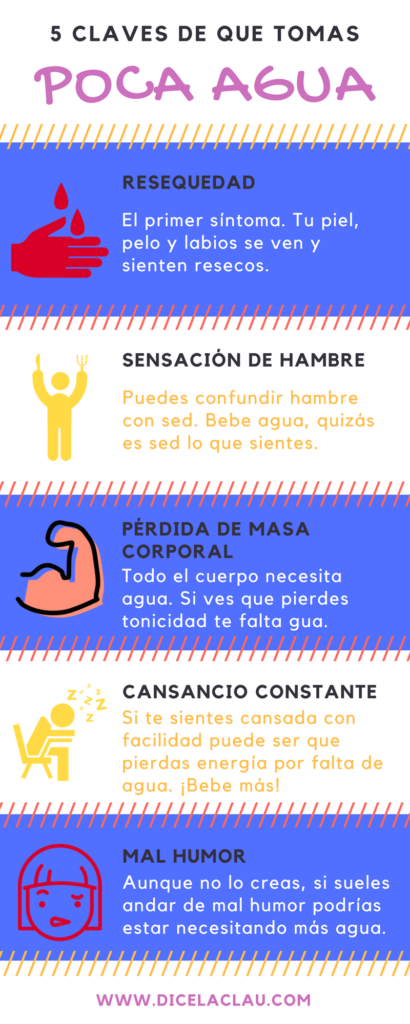 Otra de las claves que te indican que no tomas suficiente agua es el cansancio. Si te sientes cansada fácilmente podría ser por falta de agua. ¿Por qué ocurre esto? Cuando hace falta más agua en la sangre el cuerpo pierde energía, por lo tanto podrías sentirte cansada. Nuevamente, comienza a tomar más agua a ver si se te va quitando el cansancio. Si no mejora mejor ve a un especialista, no es normal estar siempre cansada y podría ser otra cosa (anemia, por ejemplo).